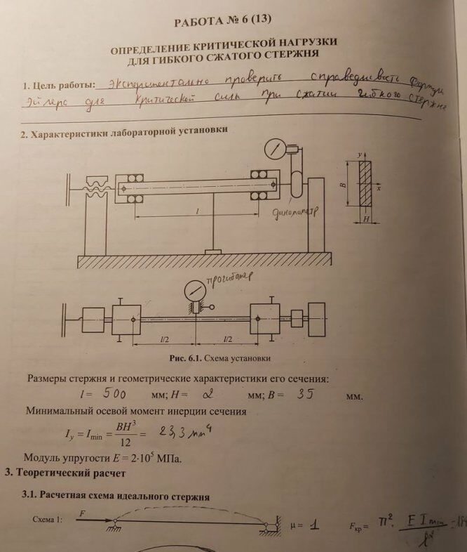 Л/Р_№13 Определение критической нагрузки для гибкого сжатого стержня