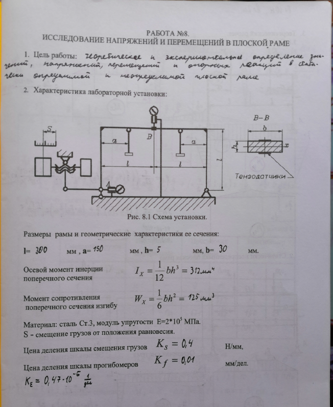 Для студентов МГТУ им. Н.Э.Баумана по предмету Сопротивление материаловИсследование напряжений и перемещений в плоской рамеИсследование напряжений и перемещений в плоской раме