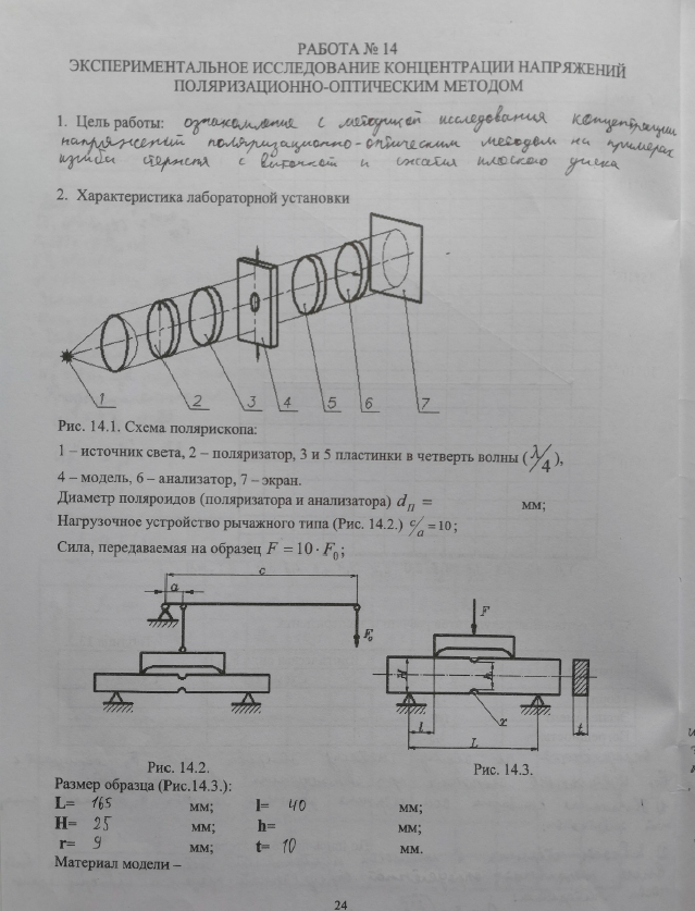 Лабораторная работа 14: Экспериментальное исследование концентрации напряжений поляризационно-оптическим методом