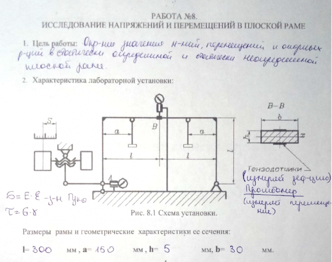 Для студентов МГТУ им. Н.Э.Баумана по предмету Сопротивление материаловИсследование напряжений и перемещений в плоской рамеИсследование напряжений и перемещений в плоской раме