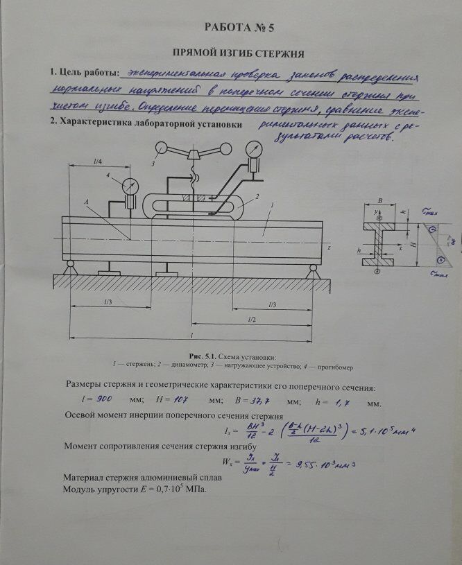 Цель данной работы - экспериментальным путем проверить распределение нормальных напряжений в поперечном сечении стержня и сравнение экспериментально полученных данных с теоретическими расчетами.