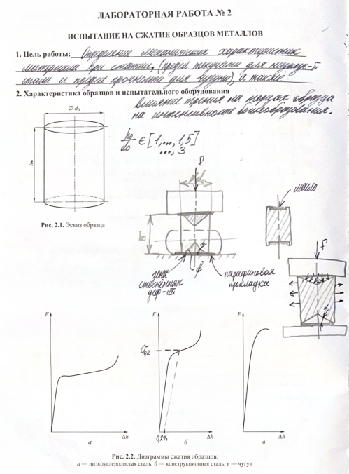 Для студентов МГТУ им. Н.Э.Баумана по предмету Сопротивление материаловИспытание на сжатие образцов металловИспытание на сжатие образцов металлов