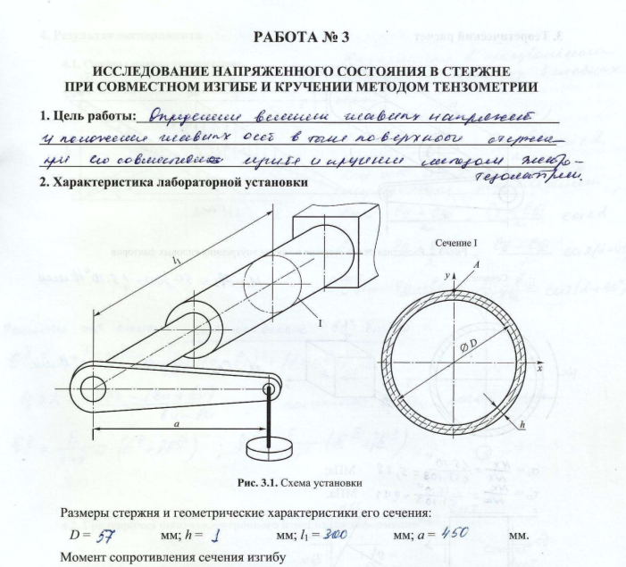 Лабораторная работа №10 - Исследование напряженного состояния в стержне при совместном изгибе и кручении методом тензометрии. Зачтена.