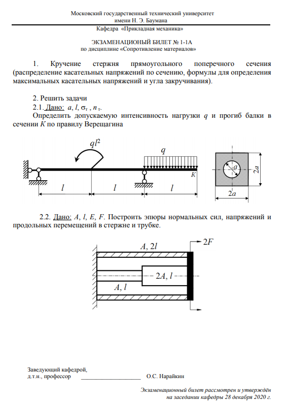 Для студентов МГТУ им. Н.Э.Баумана по предмету Сопротивление материаловУсловия 17 билетов к экзаменуУсловия 17 билетов к экзамену