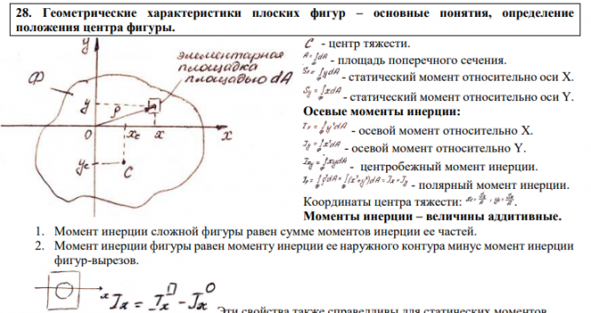 28. Геометрические характеристики плоских фигур – основные понятия, определение положения центра фигуры.