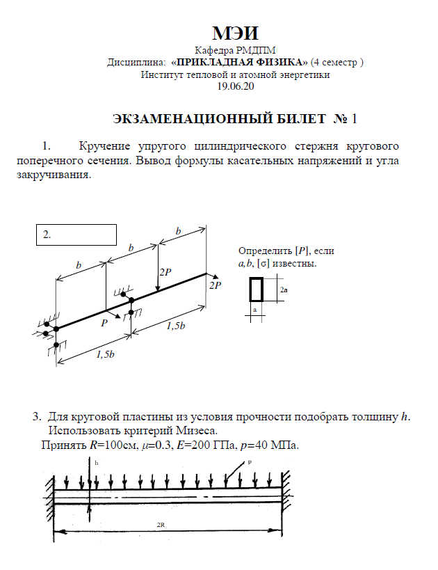 Для студентов НИУ «МЭИ» по предмету Сопротивление материаловБилетыБилеты