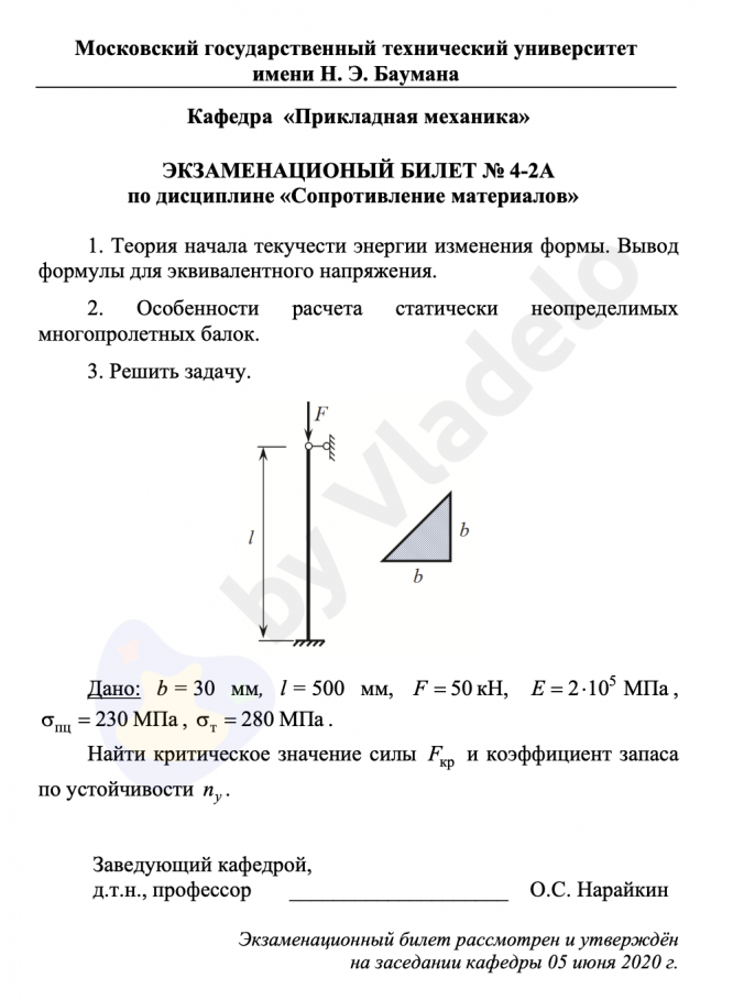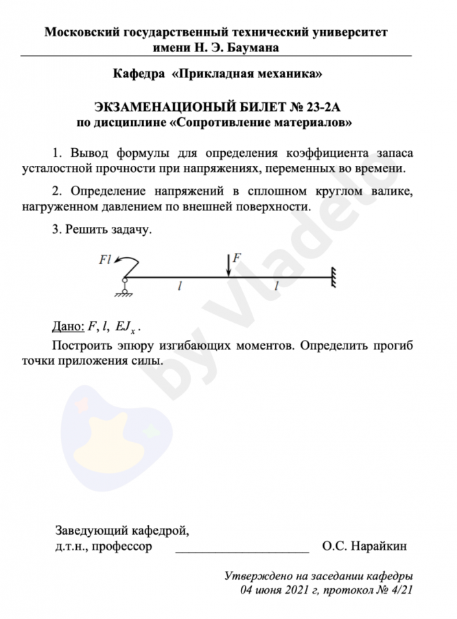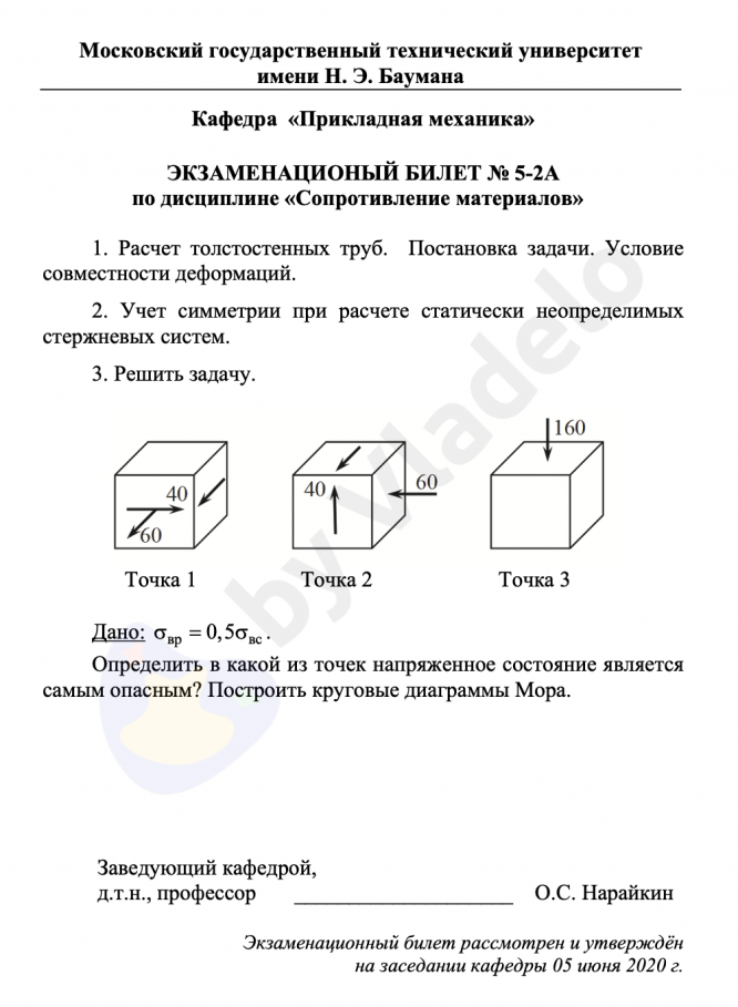 Для студентов МГТУ им. Н.Э.Баумана по предмету Сопротивление материаловБилеты для экзаменаБилеты для экзамена