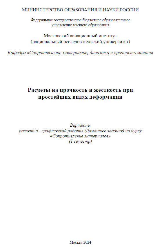 Расчеты на прочность и жесткость при простейших видах деформации - Варианты расчетно - графической работы (Домашнее задание) по курсу Сопротивление материалов