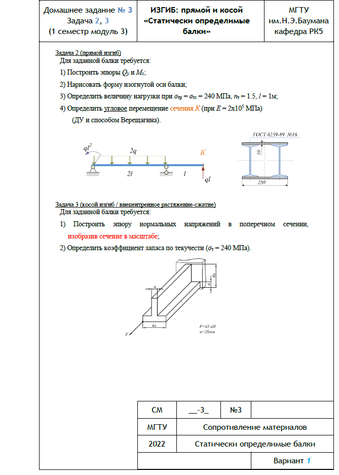 Для студентов МГТУ им. Н.Э.Баумана по предмету Сопротивление материаловСтатически определимые балкиСтатически определимые балки 2025-09-08СтудИзба