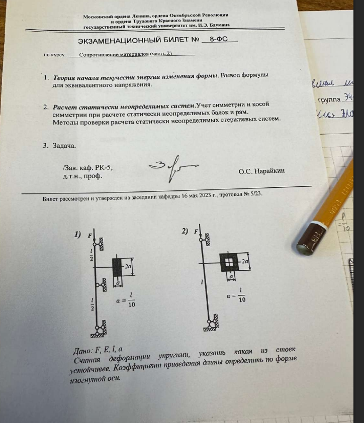Для студентов МГТУ им. Н.Э.Баумана по предмету Сопротивление материаловБилетыБилеты