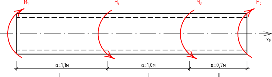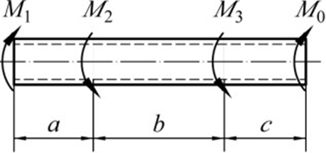 - Определить скручивающие моменты M0, M1, M2, M3;