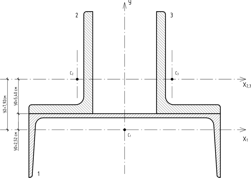 прокатных профилей, определить величины главных центральных моментов инерции. При решении использовать таблицы сортамента проката.