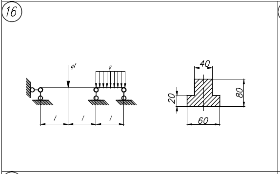 1)Произвести расчет балки при упругих деформациях: а)раскрыть статическую неопределимость и построить эпюры Q/y и M/x; б)определить допускаемую нагрузку; в)изобразить примерный вид упругой линии балки. 2)Произвести расчет балки при упруго-пластических деформациях: а)вычислить предельный момент для заданного сечения; б)найти предельную нагрузку для балки и коэффициент запаса; в)определить коэффициент запаса как отношение предельной нагрузки к допустимой нагрузке. Дано: материал балки идеально упруго-пластичный; σ/Т=320МПа; [n]=1,5; l=1м.
