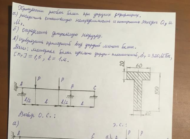 Домашнее задание №1, задача 1, "Статически неопределимые задачи изгиба", зачтено