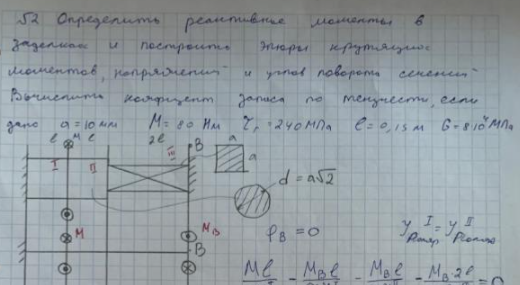 Типовой расчет по сопротивлению материалов №2 "Кручение", задача № 2.3, зачтено