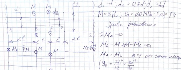 Типовой расчет по сопротивлению материалов №2 "Кручение", задача № 2.3, зачтено