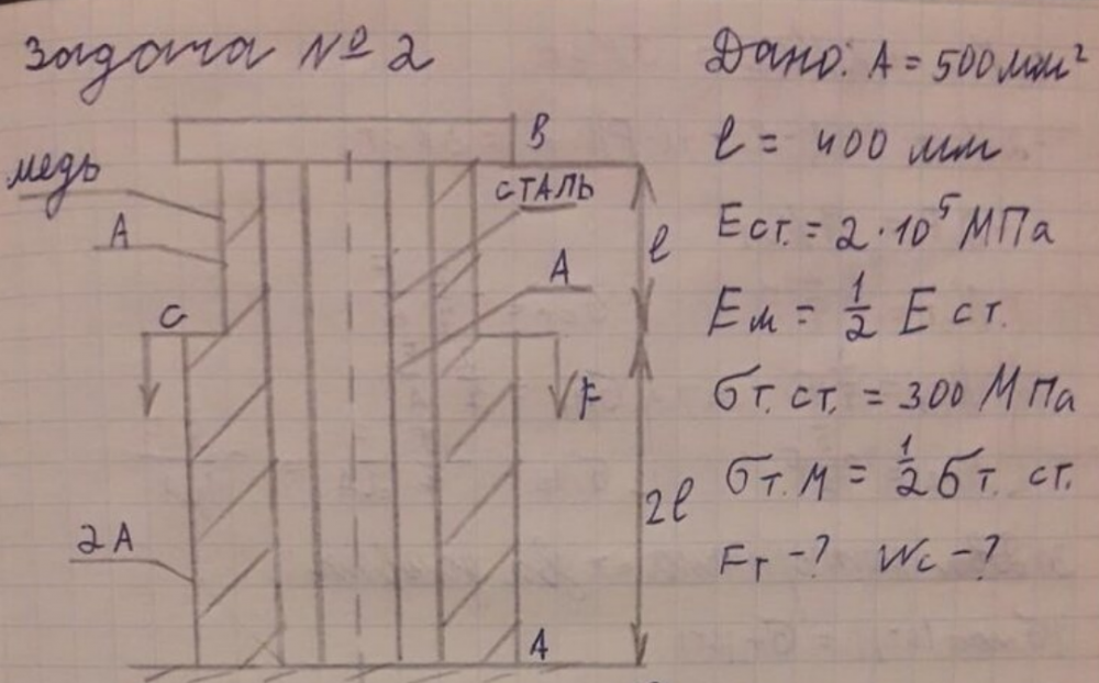 Вариант 1 - Растяжение-сжатие - Задача 2.1