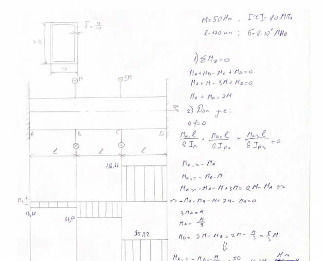 Типовой расчет по сопротивлению материалов №2 "Кручение", задача № 2.3, зачтено