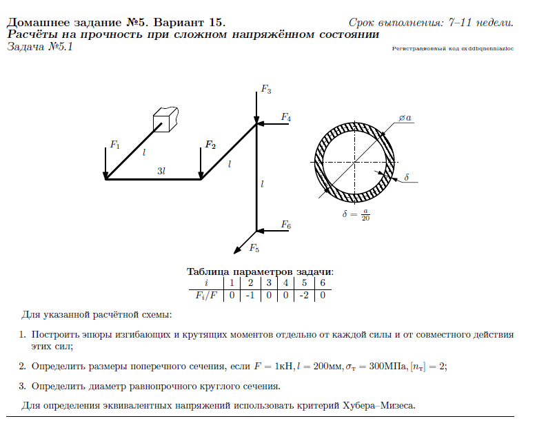 Для студентов МГТУ им. Н.Э.Баумана по предмету Сопротивление материаловЗадача 5.1Задача 5.1