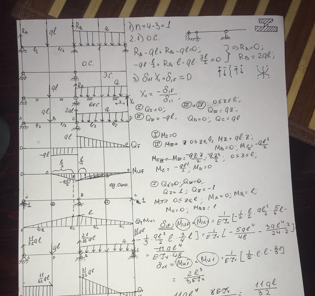 Домашнее задание №1, задача 1, "Статически неопределимые задачи изгиба", зачтено