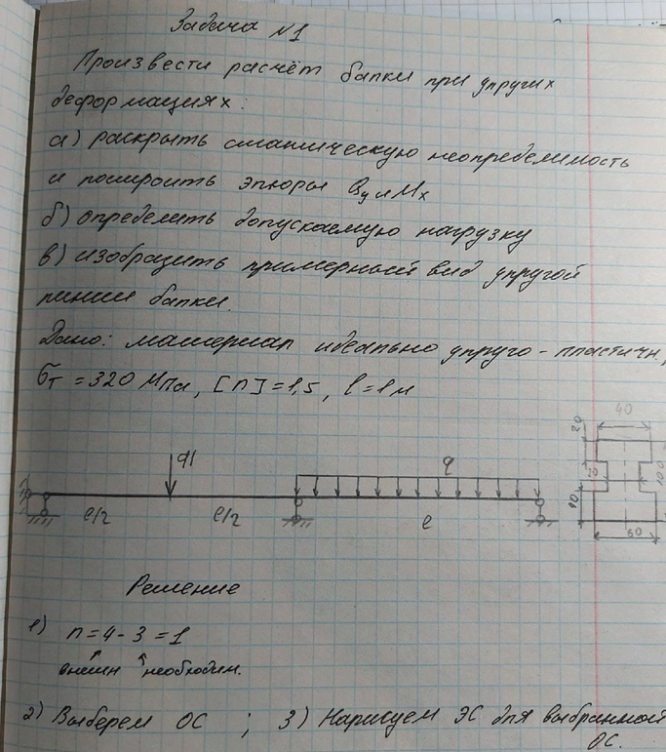Домашнее задание №1, задача 1, "Статически неопределимые задачи изгиба", зачтено