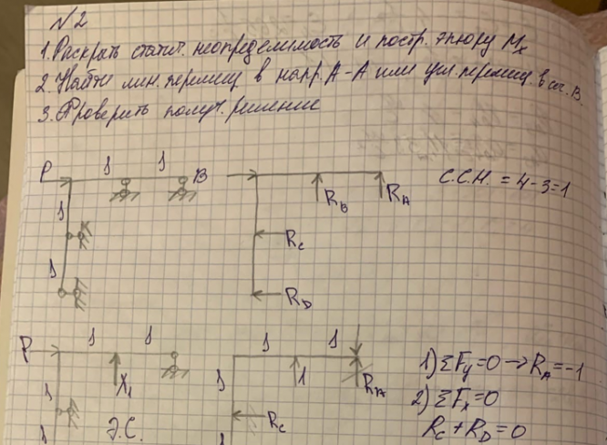 Домашнее задание №1, задача 2, "Статически неопределимые задачи изгиба", зачтено