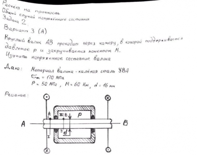 2-ая задача (Вариант А) из ДЗ №2 "Расчёт на прочность. Общий случай напряженного состояния".