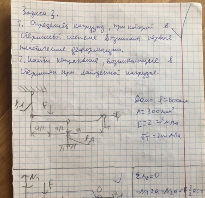 Типовой расчет по сопротивлению материалов №2 "Растяжение-сжатие", задача № 2.2, зачтено