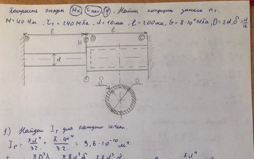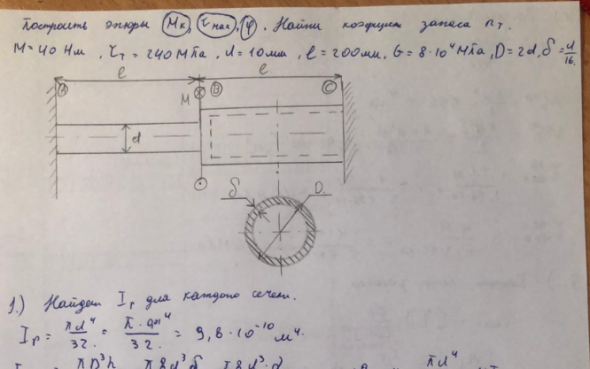 Типовой расчет по сопротивлению материалов №2 "Кручение", задача № 2.3, зачтено