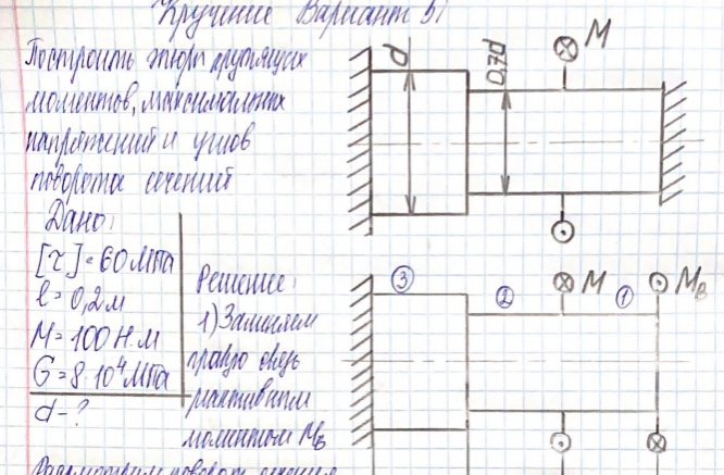 Типовой расчет по сопротивлению материалов №2 "Кручение", задача № 2.3, зачтено