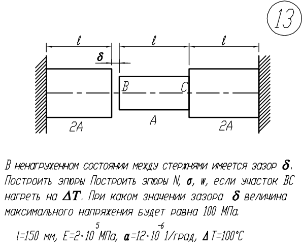 Вариант 13 - Растяжение-Сжатие - Задача 2.1