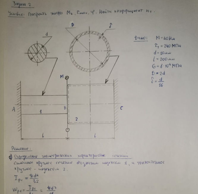 Типовой расчет по сопротивлению материалов №2 "Кручение", задача № 2.3, зачтено