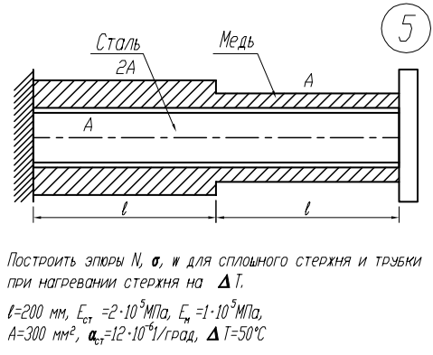 Вариант 5 - Растяжение-Сжатие - Задача 2.1