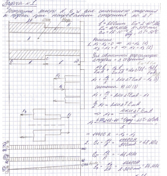 Типовой расчет по сопротивлению материалов №2 "Растяжение-сжатие", задача № ХХХХХ, зачтено