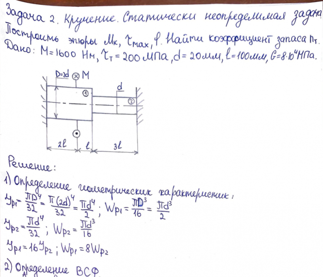 Типовой расчет по сопротивлению материалов №2 "Кручение", задача № 2.3, зачтено