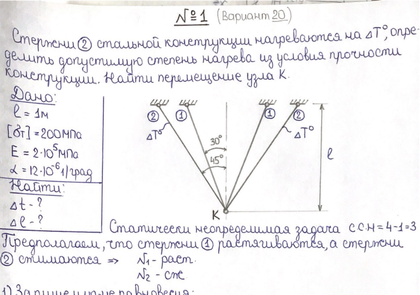 Типовой расчет по сопротивлению материалов №2 "Растяжение-сжатие", задача № 2.1, зачтено