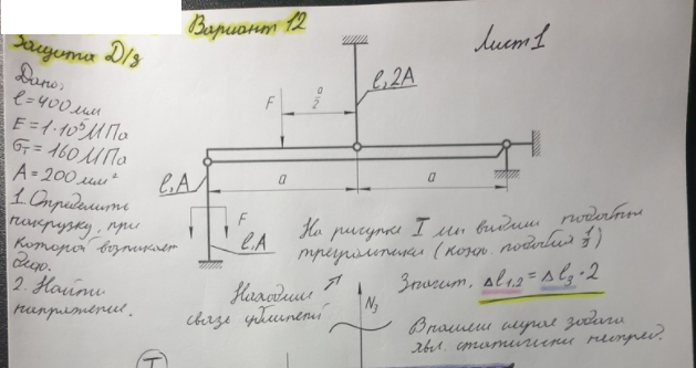 Типовой расчет по сопротивлению материалов №2 "Растяжение-сжатие", задача № 2.2, зачтено