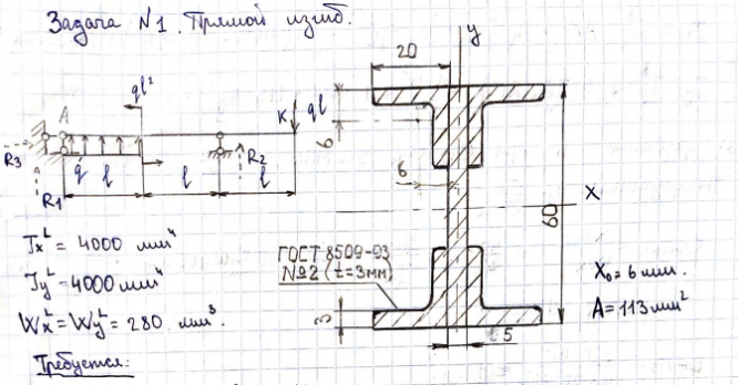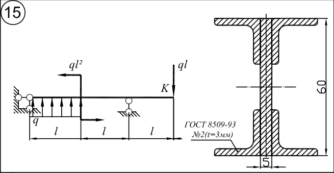 Вариант 15 - Прямой изгиб - Задача 4.1