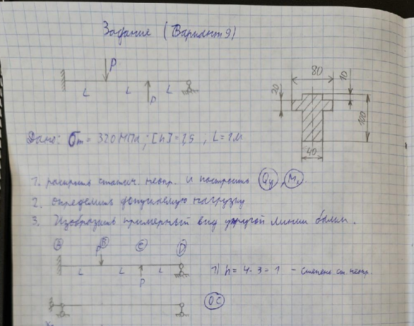 Домашнее задание №1, задача 1, "Статически неопределимые задачи изгиба", зачтено