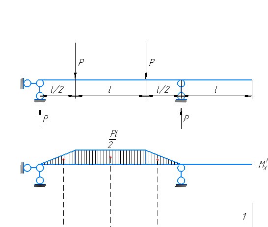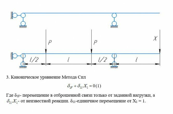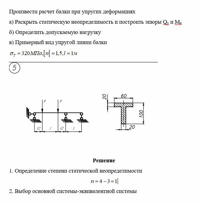 Произвести расчет балки при упругих деформацияха) Раскрыть статическую неопределимость и построить эпюры Qy и Mx