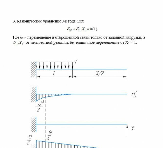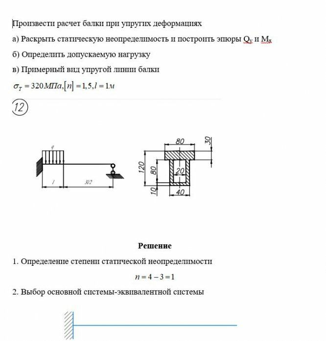 Произвести расчет балки при упругих деформацияха) Раскрыть статическую неопределимость и построить эпюры Qy и Mx