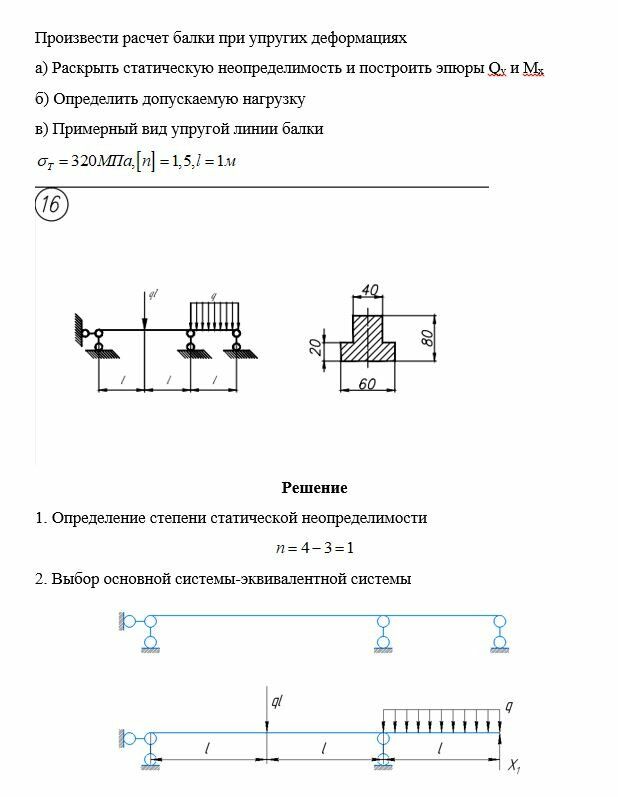 2022г Вариант 16 - ДЗ №1 - Статически неопределимые задачи изгиба - Задача 1​​​​