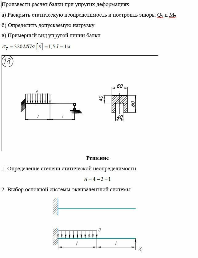 2022г Вариант 18 - ДЗ №1 - Статически неопределимые задачи изгиба - Задача 1