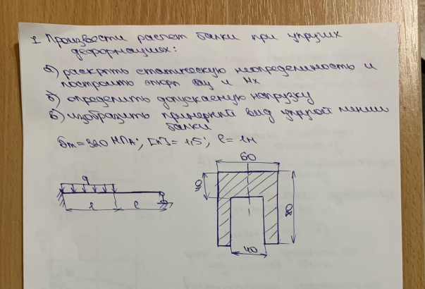 Домашнее задание №1, задача 1, "Статически неопределимые задачи изгиба", зачтено