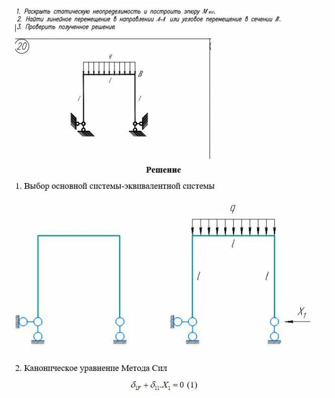 Вариант 20 - ДЗ №1 - Статически неопределимые задачи изгиба - Задача 2
