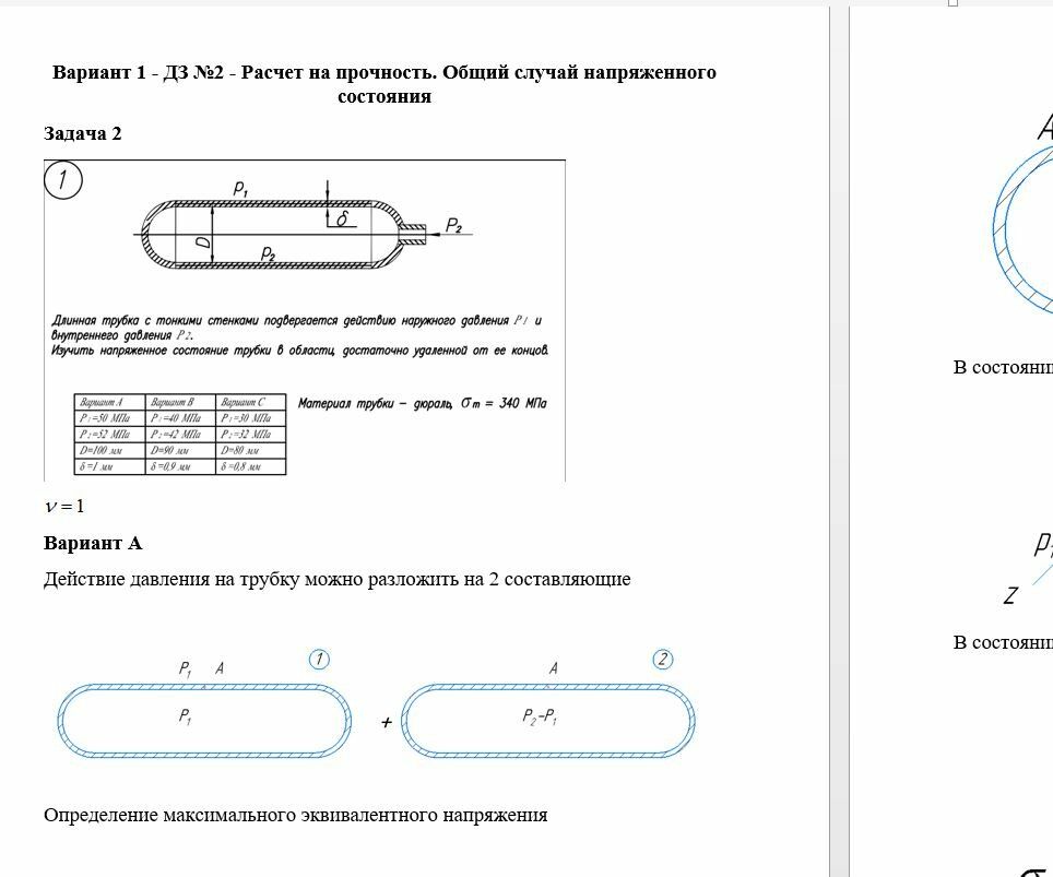2022г Вариант 1 - ДЗ №2 - Расчет на прочность - Задача 2 (Вариант А+В+С)