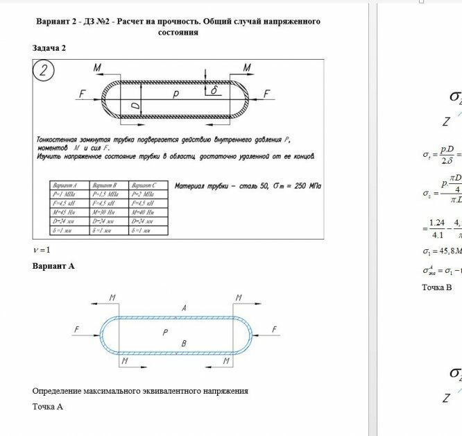2022г Вариант 2 - ДЗ №2 - Расчет на прочность - Задача 2 (Вариант А+В+С)
