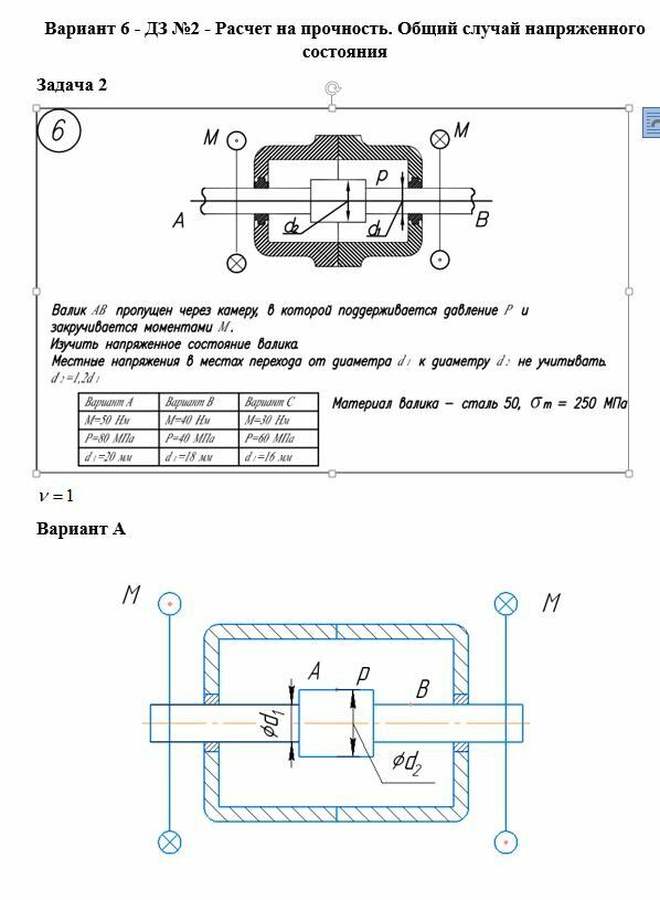 2022 г Вариант 6 - ДЗ №2 - Расчет на прочность - Задача 2 (Вариант А+В+С)