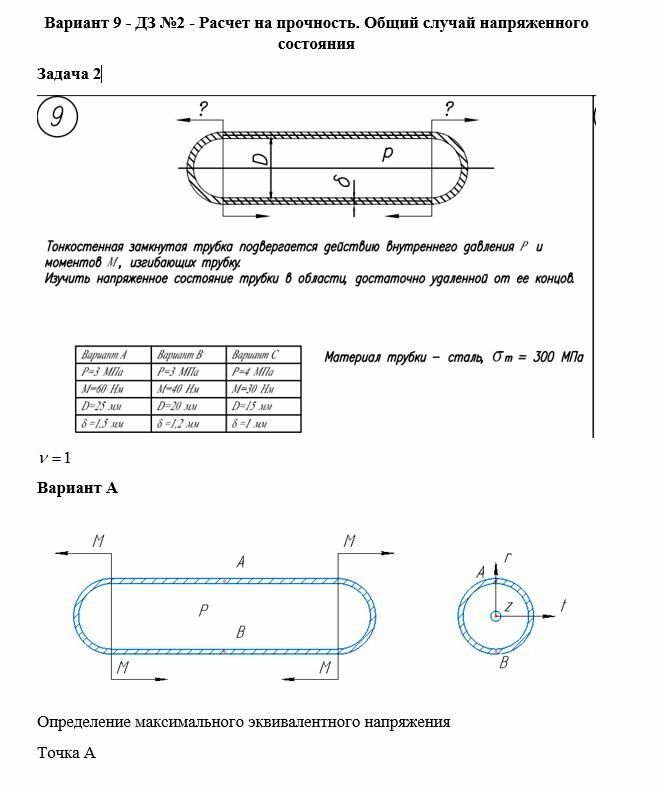 2022 г Вариант 9 - ДЗ №2 - Расчет на прочность - Задача 2 (Вариант А+В+С)