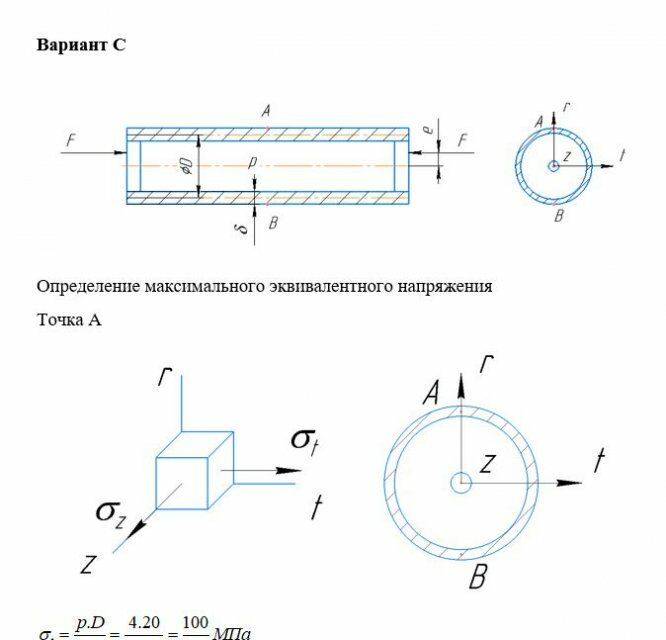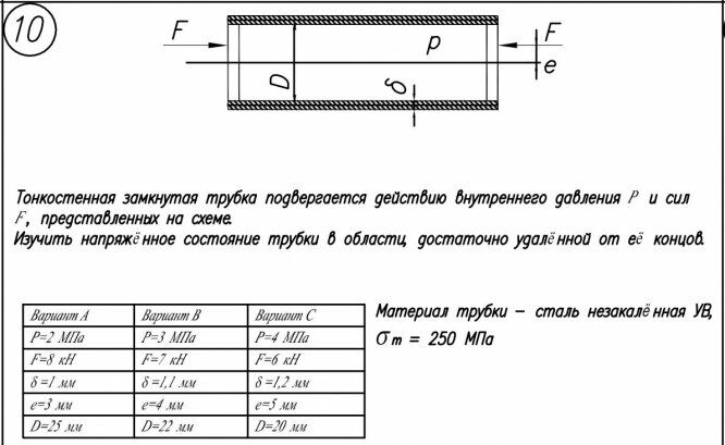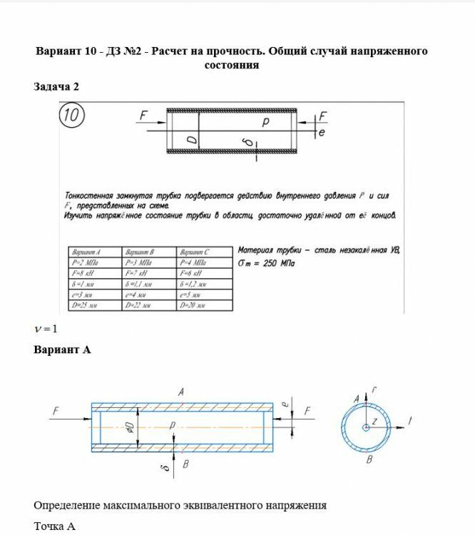 2022 г Вариант 10 - ДЗ №2 - Расчет на прочность - Задача 2 (Вариант А+В+С)